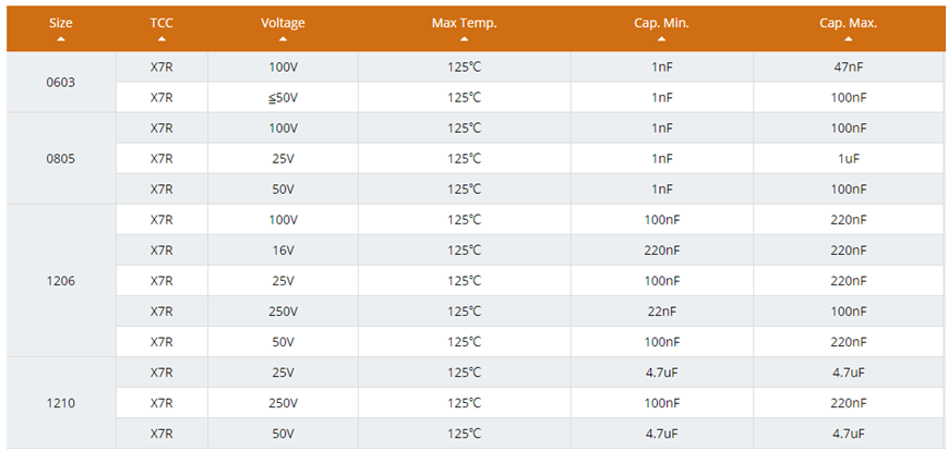 我们的积层陶瓷电容种类有:泛用型、超小尺寸、高压电容、软端电极电容、高频交流用的高频电容、车用电容、安规电容、低感质电容及其他產品。